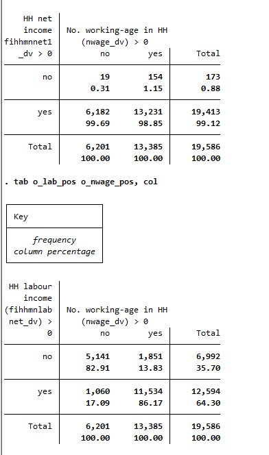 And households with nwage_dv = 0 can still have non-zero household income, because the total household income variable also includes non-labour components such as pensions, benefits, and so on. When you compare different household income measures this becomes clearer. For instance, total household income (fihhmnnet1_dv) is >0 in almost all households regardless of nwage_dv, including those with nwage_dv=0, because it includes non-labour sources. By contrast, labour-only income (fihhmnlabnet_dv) is 0 in the majority of households where nwage_dv=0 and >0 in the majority of households when nwage_dv>0.