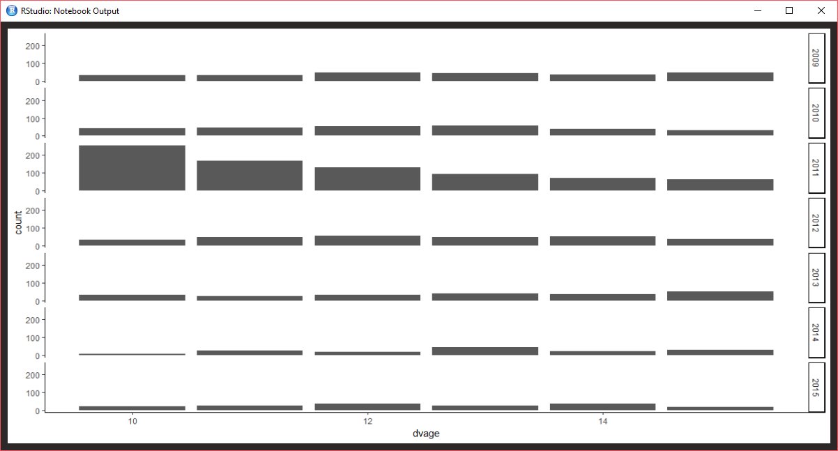 I have attached the histogram. I have also attached a histogram of the ages of the respondents choosing option 1 each year. It seems like many 10 years olds are choosing 1 in 2011.