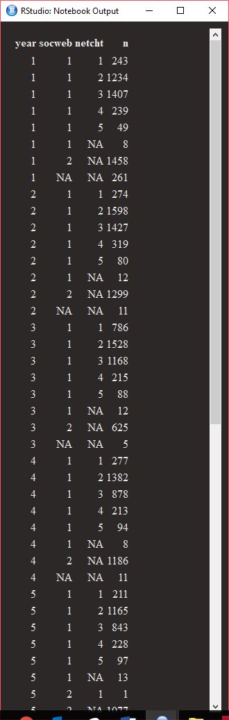 Find attached a screenshot of a table I made examining people's responses for socweb and netcht. If you explanation would be true, then we would expect that for 2011 (year 3) more people who score 2 on socweb to choose 1 for netcht, but not a single participant has this sort of response pattern.